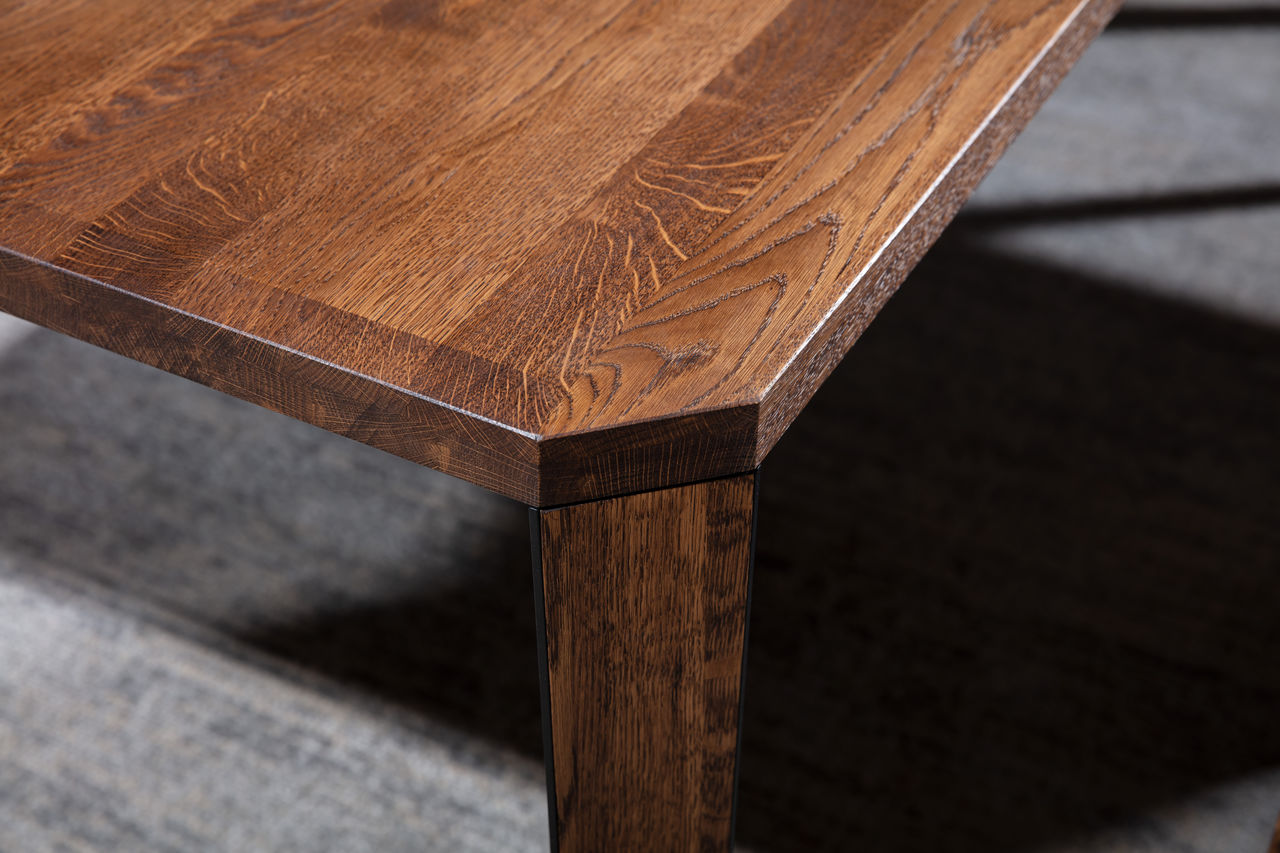 Επιφάνεια και πόδια κατασκευασμένα από μασίφ δρυς με επεξεργασία λαδιού. Η χρωματική παλέτα σύμφωνα με τον κατάλογο λαδιών. Το πίσω μέρος των ποδιών είναι μεταλλικό.